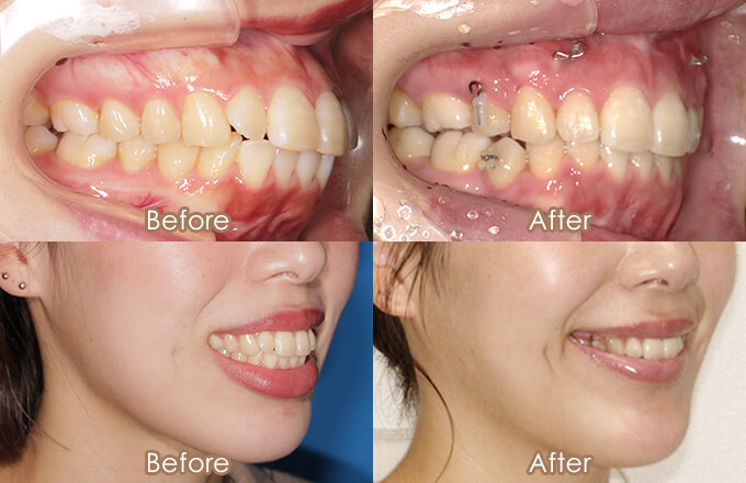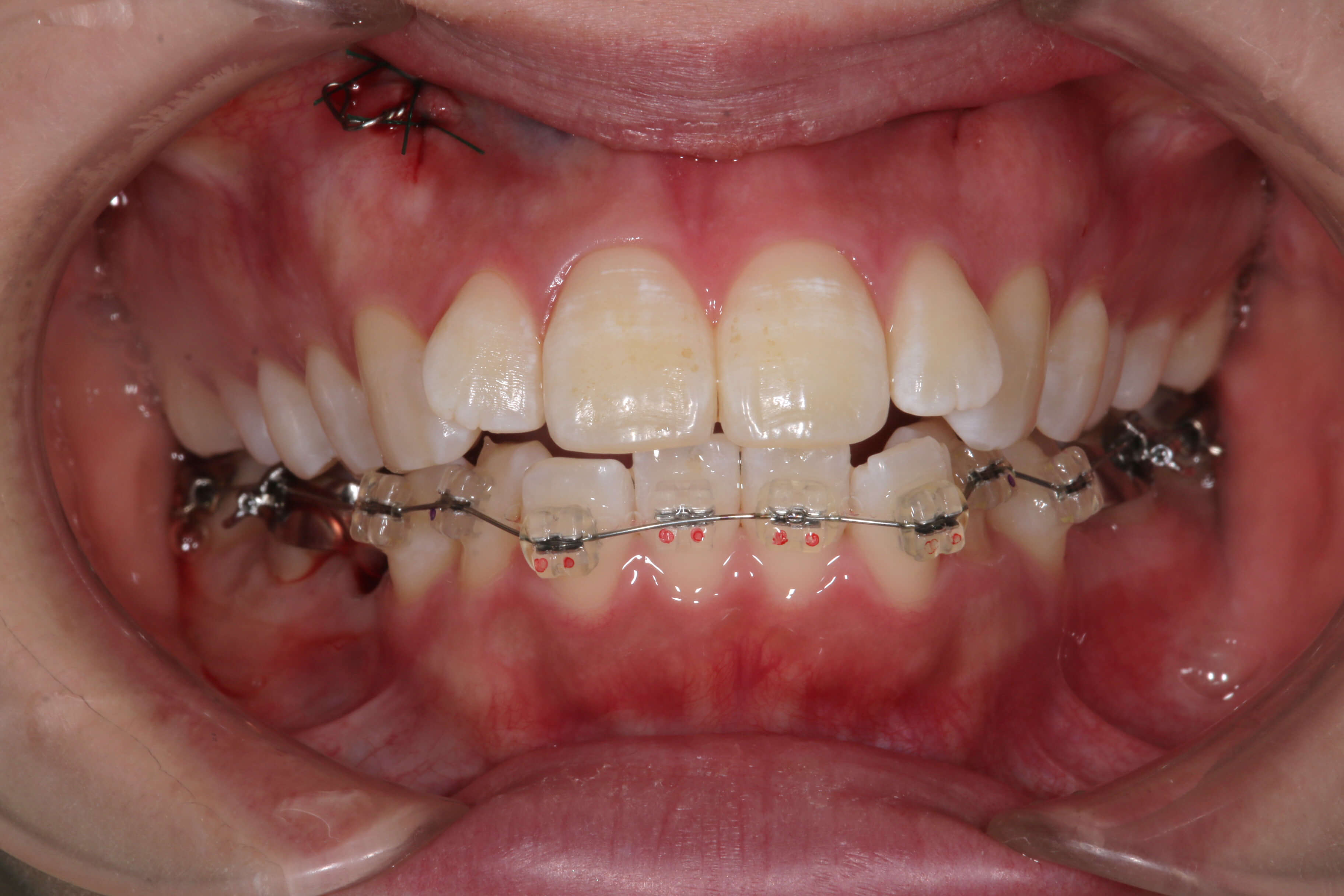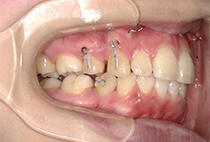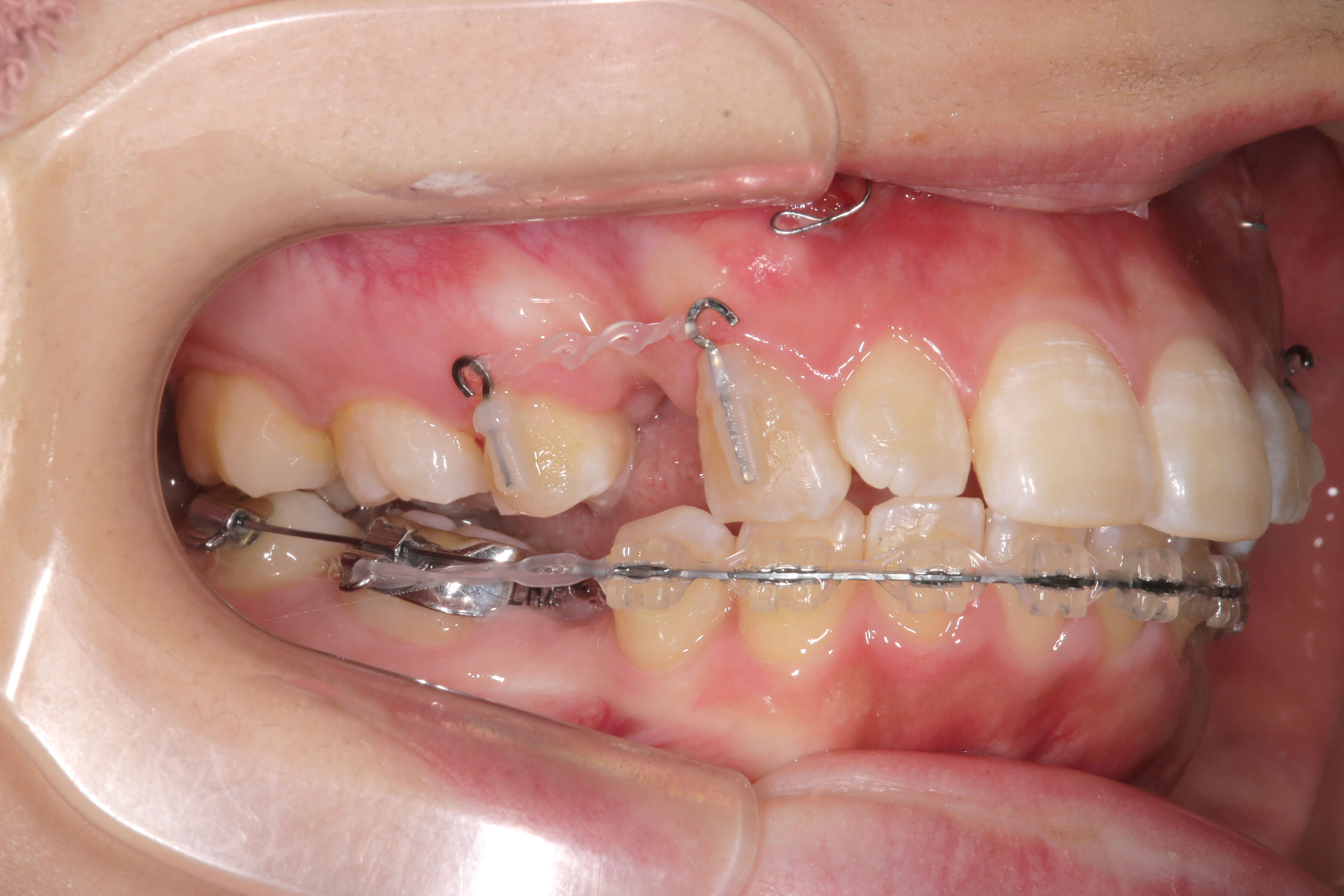 出っ歯と同時にガミースマイルを治療するには、インプラントアンカーの使用が効果的です。