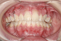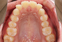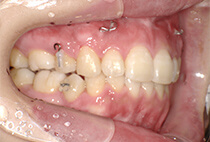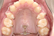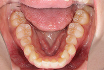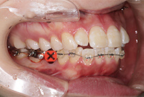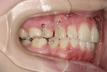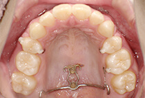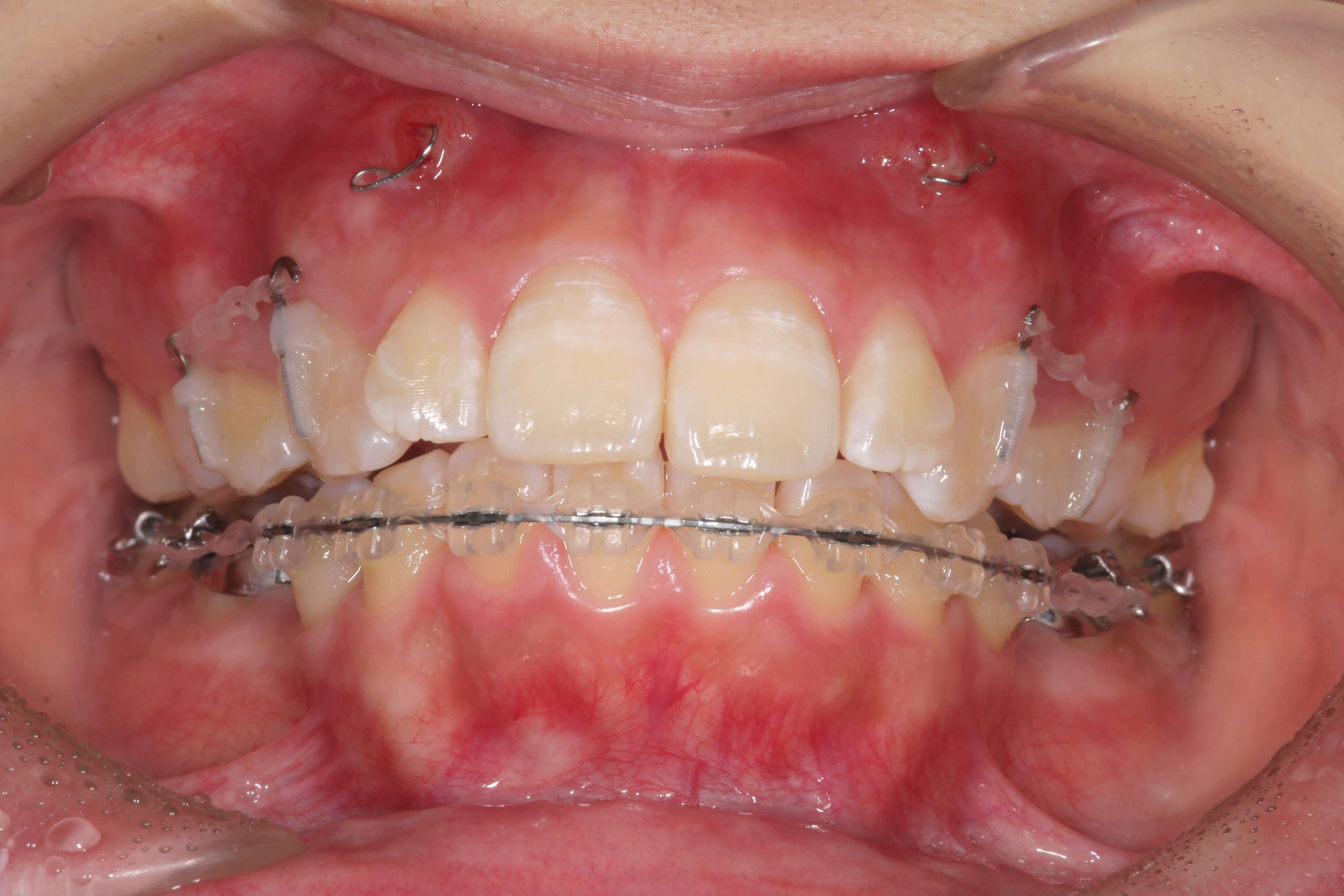 臼歯の移動を確実に行うため初めの11ヶ月のみ下顎に唇側ブラケット装置を併用。