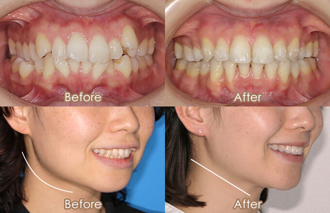 八重歯の見た目が気になってご来院されましたが、実は顎の痛みや開口障害など、顎関節症の症状もありました。