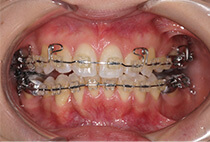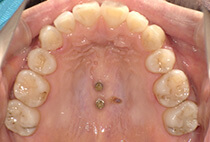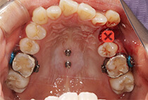 しっかり前歯を下げるために、インプラントアンカーを使用してコントロールしました。